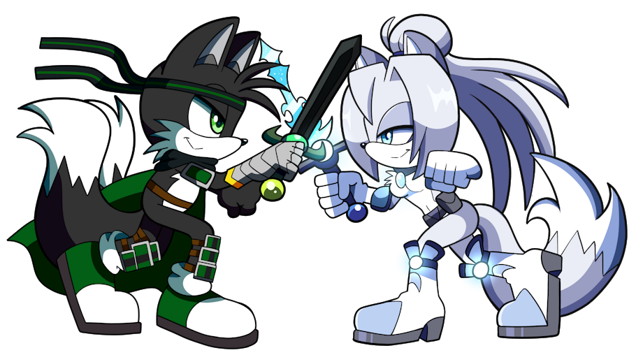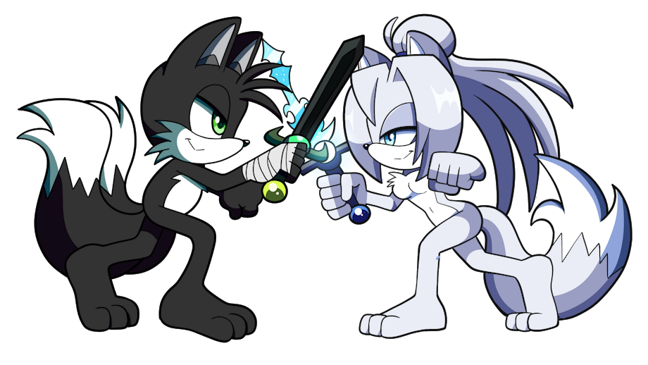 His characters Avro and his mate Yukina are having a sword fight to train their own strength as they both are knights. The second version is where the couple decides to fight like wild foxes by going completely naked.