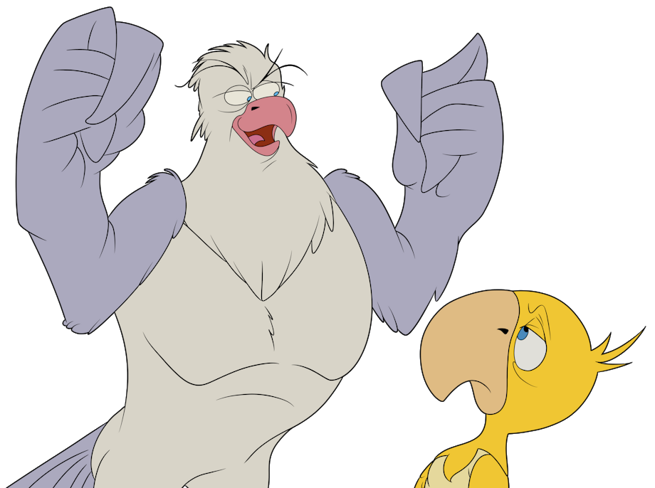Two talking bird sidekicks, White Eagle and Little Fluffy Wing the chicken hawk, from that Golden Films version of "Pocahontas" obviously made to capitalize the success of Disney's version at the time (same with some of its other movies btw) :P