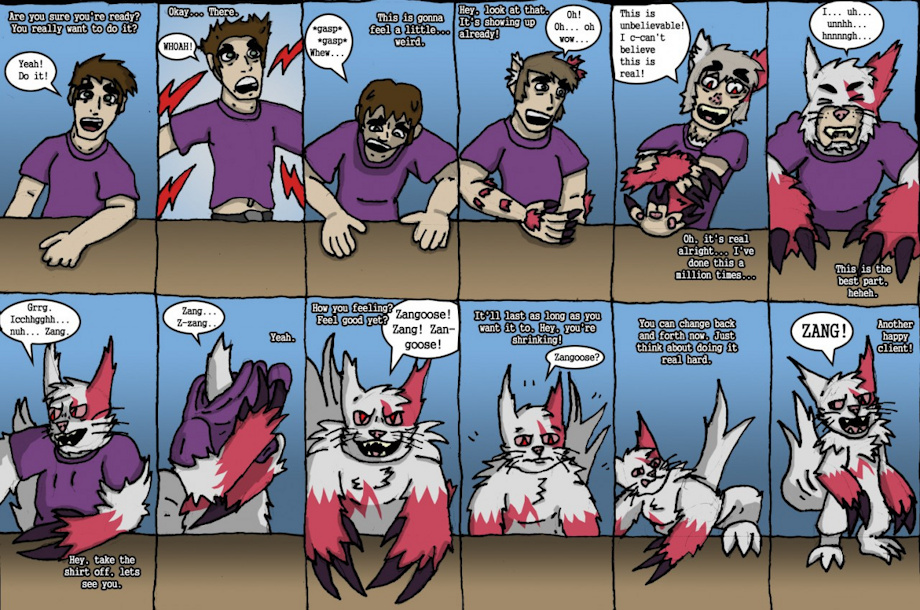 My first-ever TF sequence! A lucky guy turning into a fluffy zangoose~