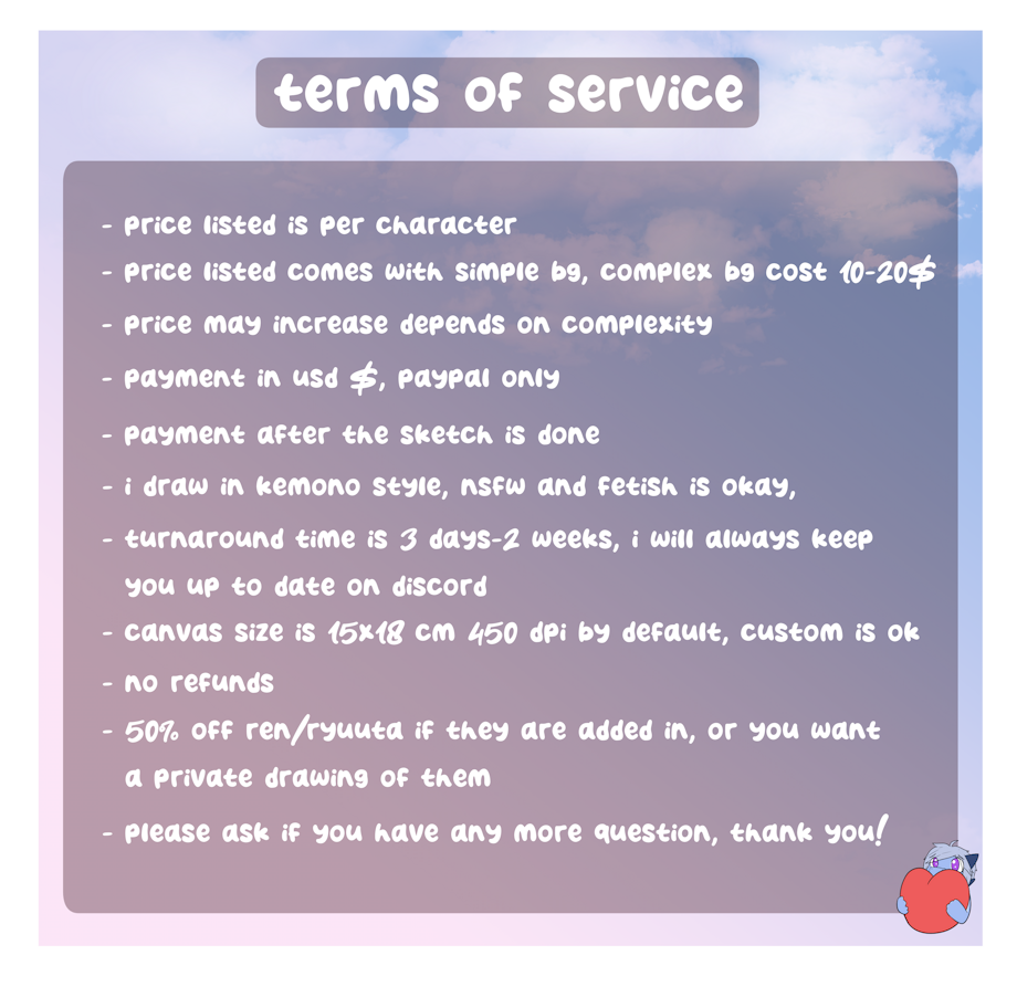 hello! im now opening commission, please pm me or add me on discord if you interested,