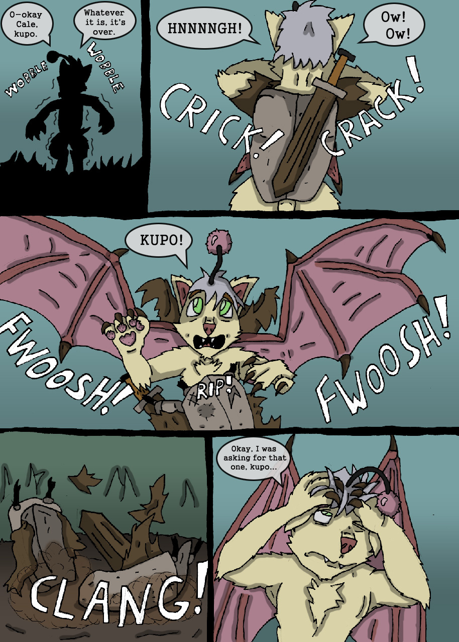 One of the very few full comics I've done for myself, a Moogle-TF based on my love of the MOG*MOD in Elder Scrolls III : Morrowind. Anthro moogles are still really really cool to me, although I made this fellow way too obnoxious and this art burns my eyes now. I still like the setup though, I might want to try re-doing something like this someday!