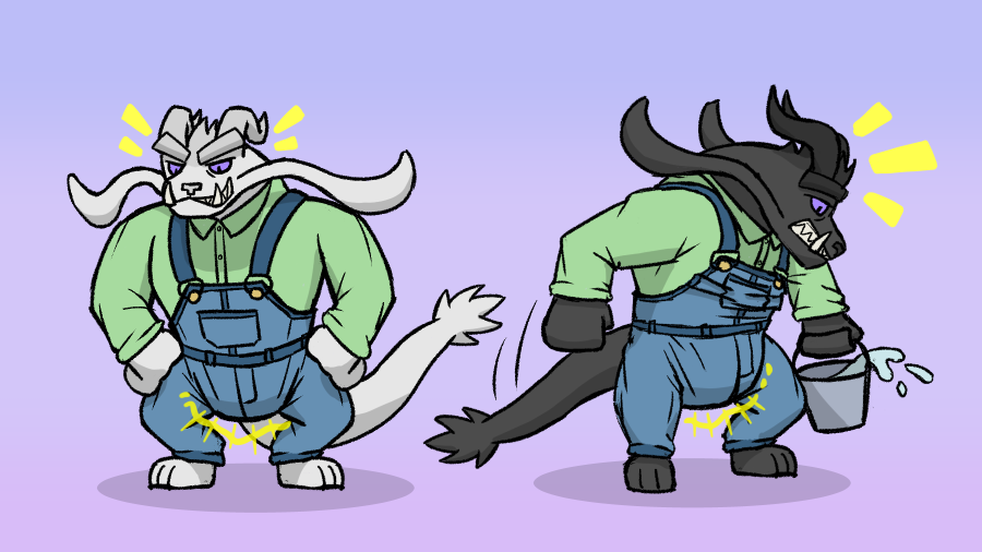 immediately after drawing Bones in overalls, I had to do the same to the coeurl twins