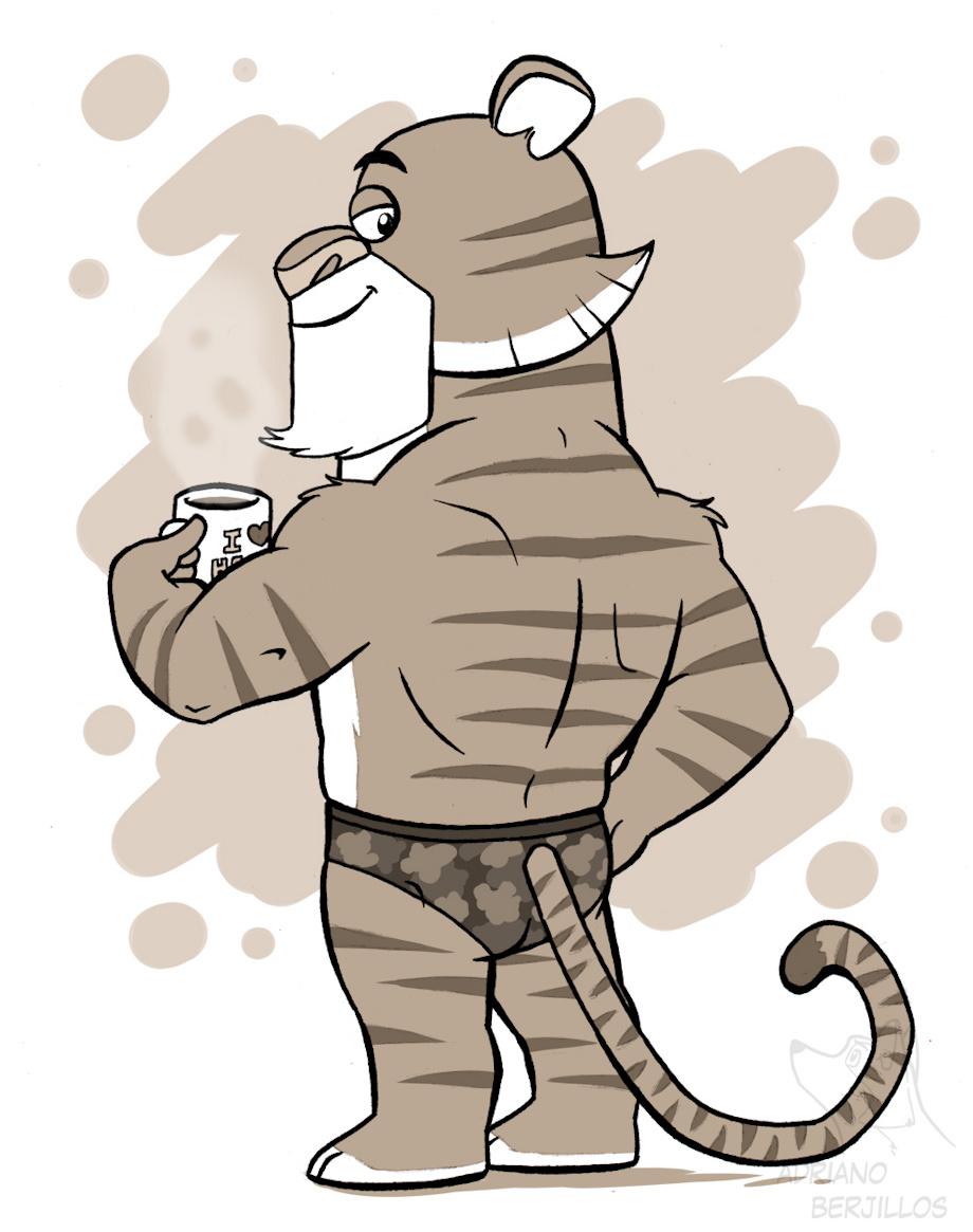 Here we have one of the hottest guys in Sherlock Yack, Tiger, in the morning, after waking up and taking a coffee. Wanna have a breakfast with him?