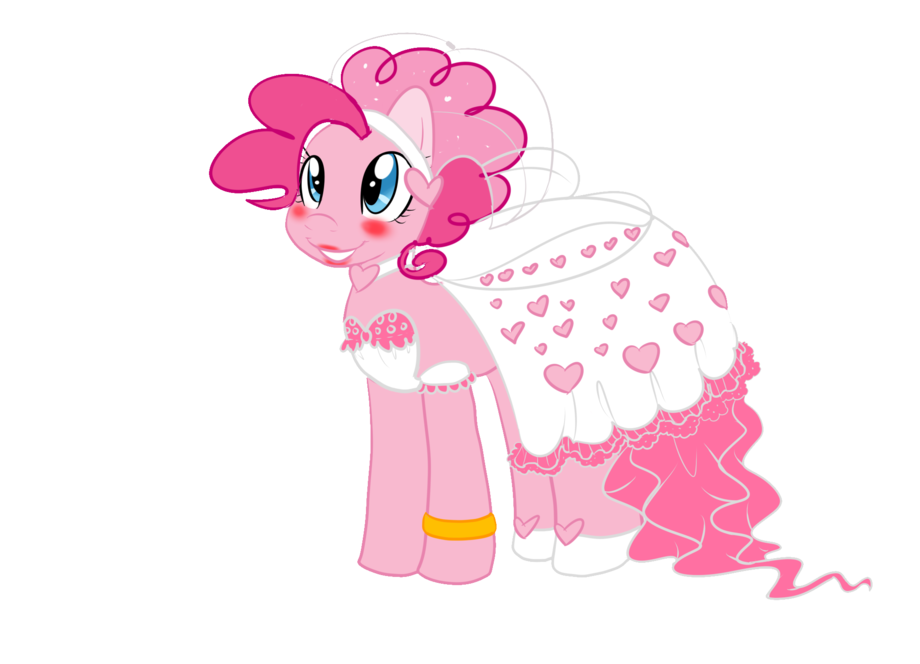 Pinkie in her wedding dress. ^W^ She is married to Bubble Berry. I was thinking making her mane and tail flatted because she will look great that way.