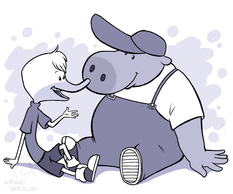 Today I've drawn two characters from "The Minimighty Kids", Jimbo (a.k.a. Superfat) and Martin (a.k.a. Superstringbean). They two, in spite of how different they are, are best friends. I even like to think in them like, why not, a future lovely couple.