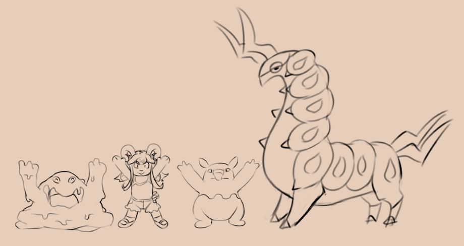 [The second image was a doodle to vent my frustration because I genuinely have no clue if gamefreak intends scolipede to be 8ft tall or 8ft long lmao]