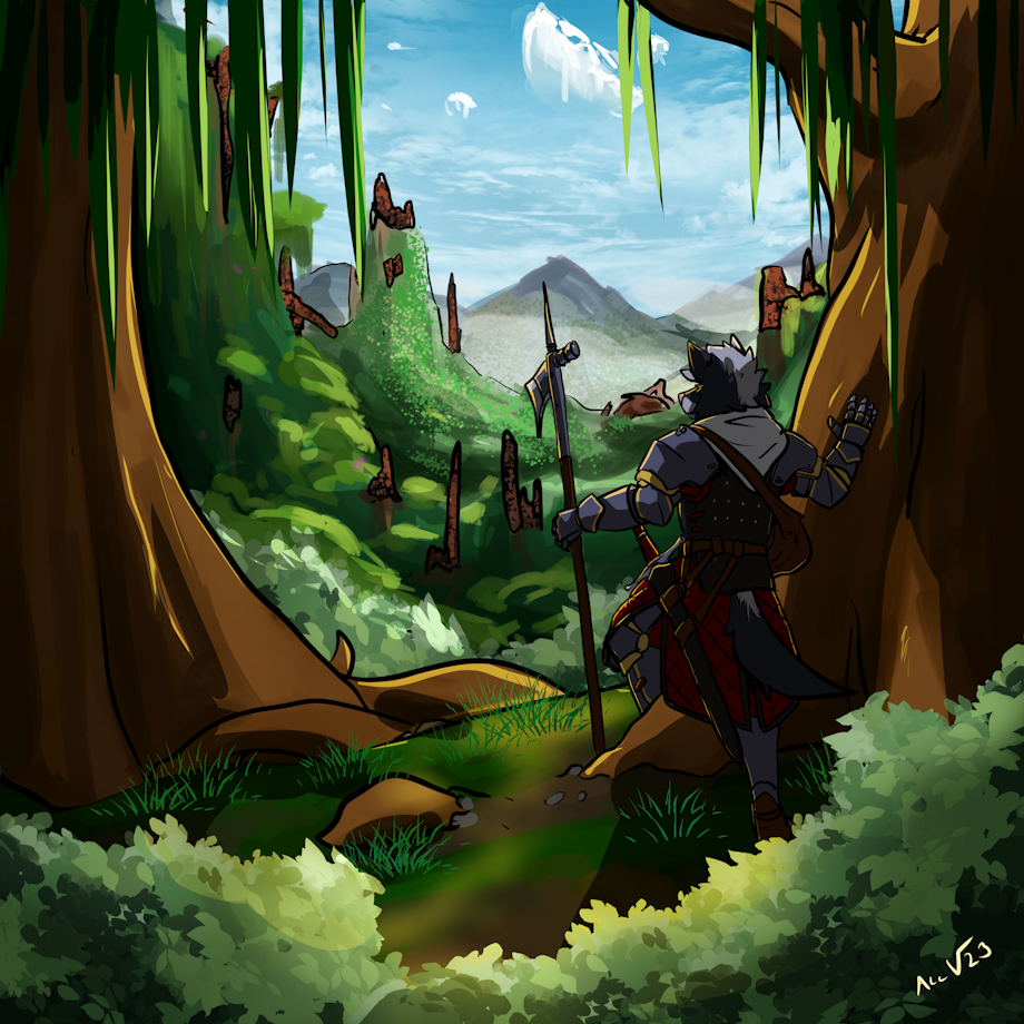 He sighed, and then looked back down, his hand tightening around the haft of his halberd. Such thoughts were of little use, aside from idle curiosity. He still had a long way to go, and many such beasts had made the graves of the old world their home, and most were hostile rather than not. He had far to go. With a push of the halberd against the ground, Sloan pushed himself forward again, stepping over the roots of the tall, ancient tree. His adventure lay ahead, and only moving forward would bring it.