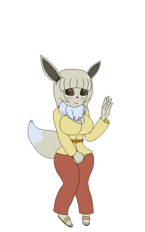 Name: Erma V. Eevee Type: Normal Species: Evolution Pokémorph Age: 18 Birthday: December 18th Height: 4’10” Ability: Anticipation Moveset: Last Resort, Iron Tail, Knock Off, Double Kick Likes: Her family, traveling, gaming, anime, winning, good food Dislikes: Seeing her sisters hurt or sad, bullying, losing Outfit Picked Out: Cosplay