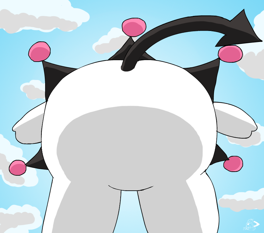 Kuromi has grown to a giant size, perhaps as part of a spell. She looks for a place to sit, but she does not know you are right below and behind her. Alas, your fate is sealed.
