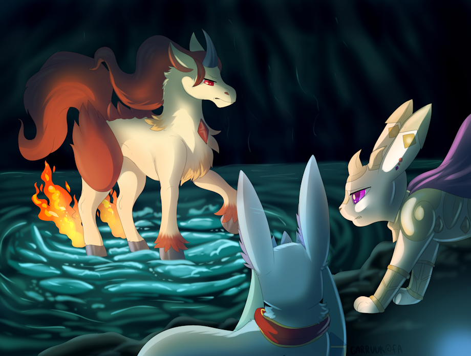 As such, she often works as an escort for merchants and young rescue teams. In this particular case, the mercantile Glaceon hired her services for assistance to acquire certain relics or at least treasures.