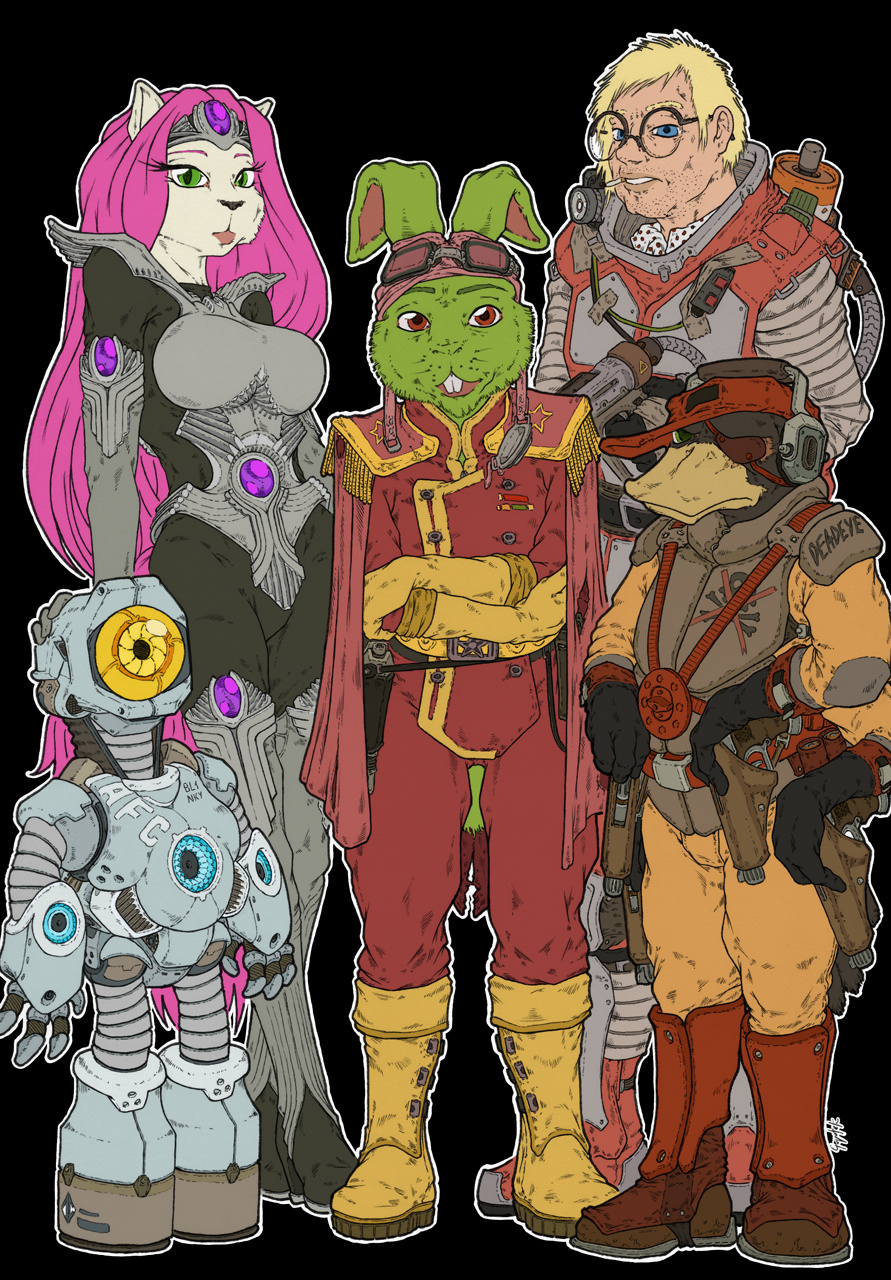 Tempted to do more SFW fan arts of Bucky and his crew in the future. Doing some great action shots with spectacular dynamics, maybe some robots and spaceships throw in... oh yes, good fun. Man can't live on smut alone ;D