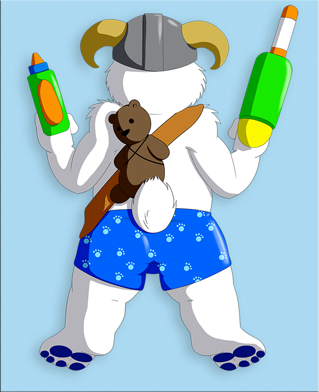 Teddy is ready for the beach, armed with water guns and water balloons. Of course Teddy's favorite plushie can't be left behind and can be seen strapped to Teddy's back.