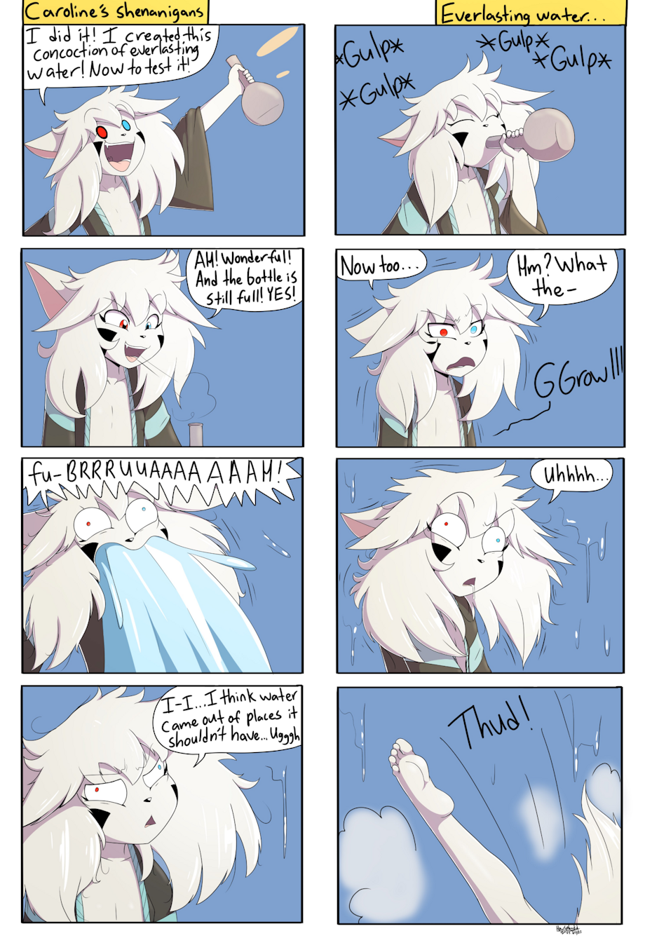 My character Caroline and her concoction of everlasting water. It didn’t go well…