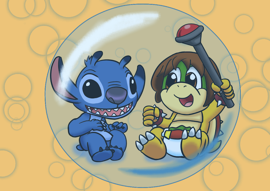 Hey folks. There's me and Stitch when we regressed to babies. We both decided to have some fun with mischief as we float in a bubble together. ^_^