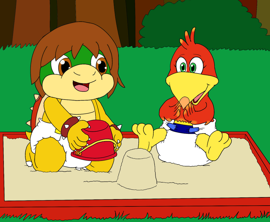 Heya buds. In this picture is me and Baby Kazooie playing together on the sandbox. I was showing her how to make a sandcastle as she looked happy to see how it works. Hope you buds enjoyed it. ^^