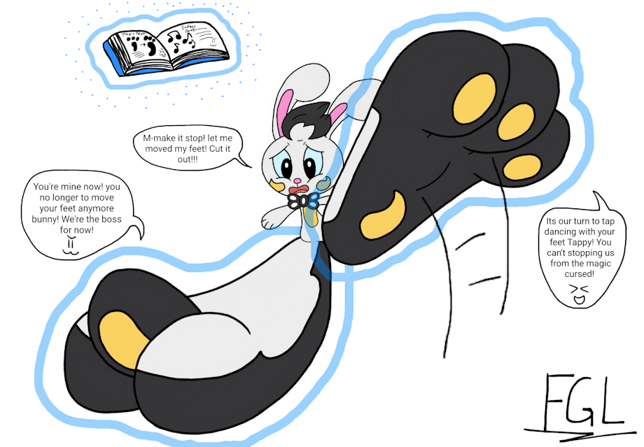 Tappy in shocked and his big cursed feet forced to tap dance endlessly and Tappy couldn'd move his feet due to magically sentient then his feet will no longer under control and taking turns of Tappy's tap dancing routine. Poor Tappy, his feet will become cursed and the uncontrollable tap dancing of their own will, forever.