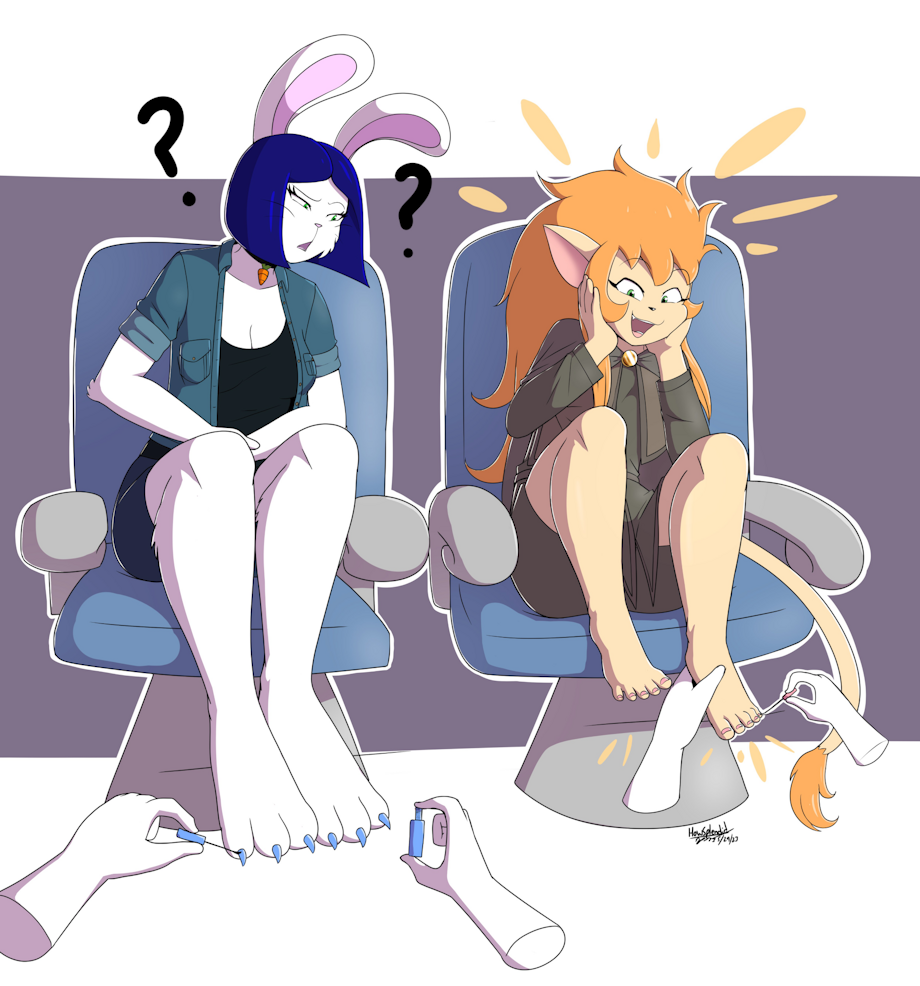 Digital commission for Mr Blue of of his character Ruuna and my character Ashter getting their nails done.