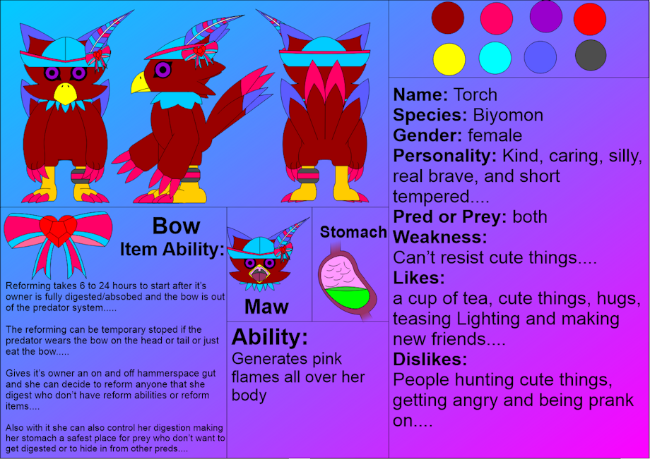 Just like on my last one I redesigned another of my original oc's this time Torch the Biyomon