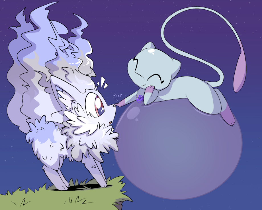 Playful and mischievous as most Mew are, Zuli does enjoy playing with or teasing her little brother, especially when he has his own included KERFLOOF button!