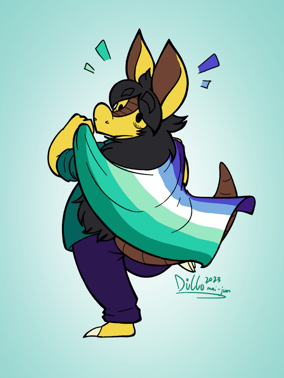 I don't usually do much for pride, but I suddenly felt like doing at least one small thing for it this year. I'm not entirely sure why. Sooo here you go. Bit of a different style, chibi and stuff. I've been using it on and off for doodles but never posted anything with it before. The flag is the gay men's flag.