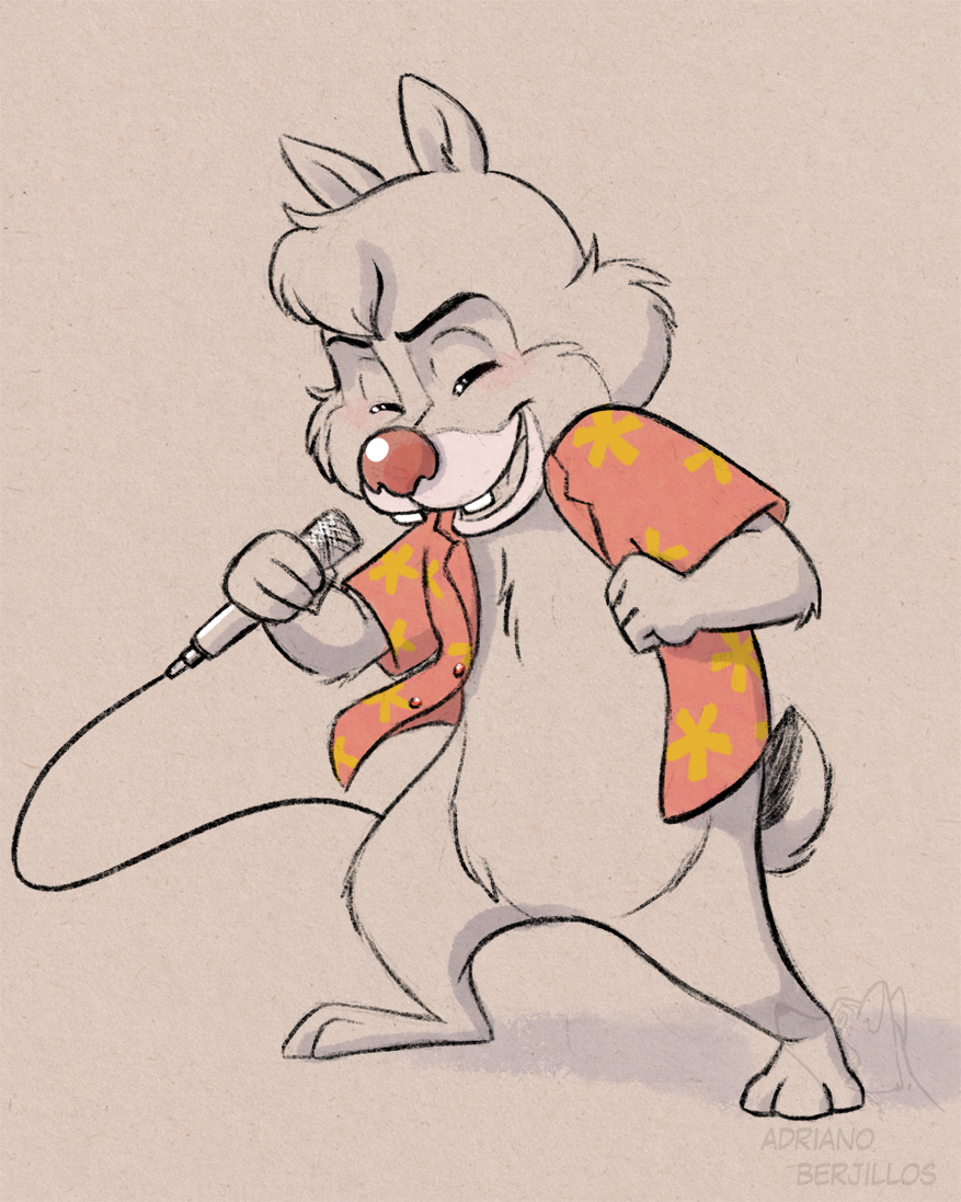 After to watch the movie I confirmed who cute, happy-go-lucky and sweet is Dale. And as long as he sings the opening theme several times along the film, here he is, singing it quite excited.