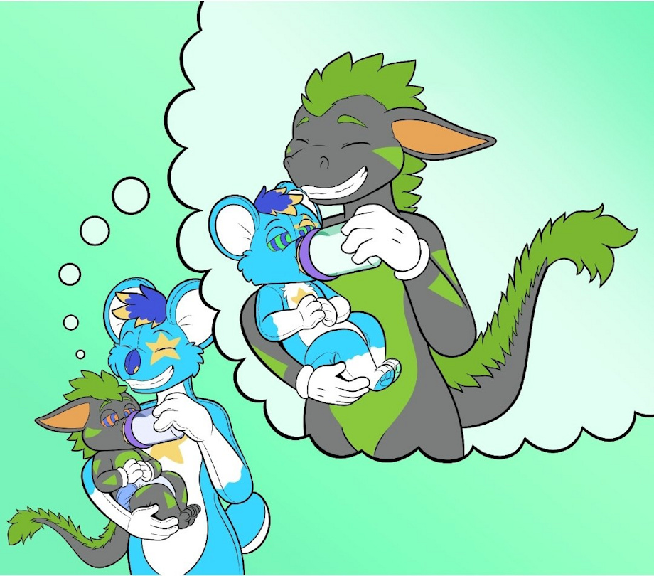 Just imagine your babying & taking care of a plushie, but that’s what you think. In reality your eyes swirly & are hypnoed to think that. As a really big plushie is babying you, making you think your big.