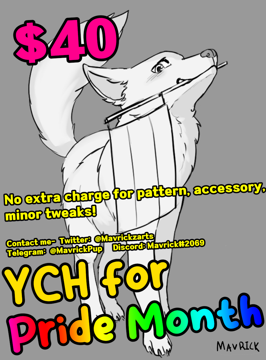 [Pride Month YCH Commission] Happy pride month, everyone! Here's my new YCH commission. I'll do my best as always! Most flags are allowed, even a country flag! However, any flag that is obviously toxic and harmful like the nazi flag or the pedophilia flag isn't.
