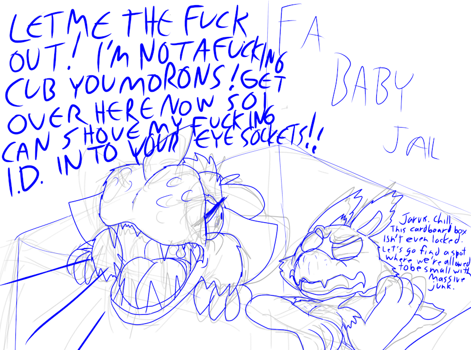 I figured this would be a good 'first' upload after not uploading anything here in years. have this sketch of what i think of furaffinity's newest thing :3
