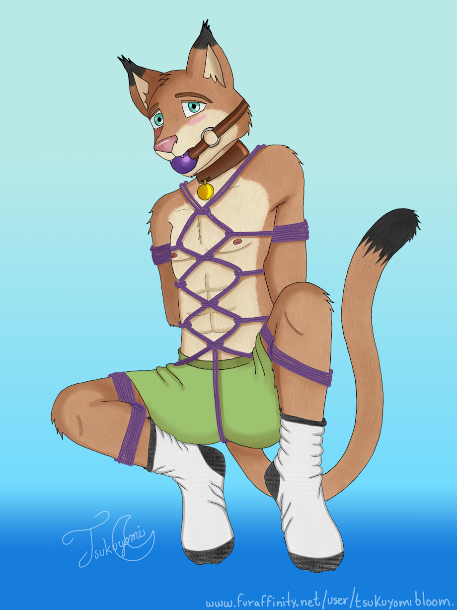 Here is a little piece for my kitten friend stinkesocke caught the kitty and tied him up in a position just as cute as he is and of course one in which im sure i will be able to play with his sexy socked paws ^///^