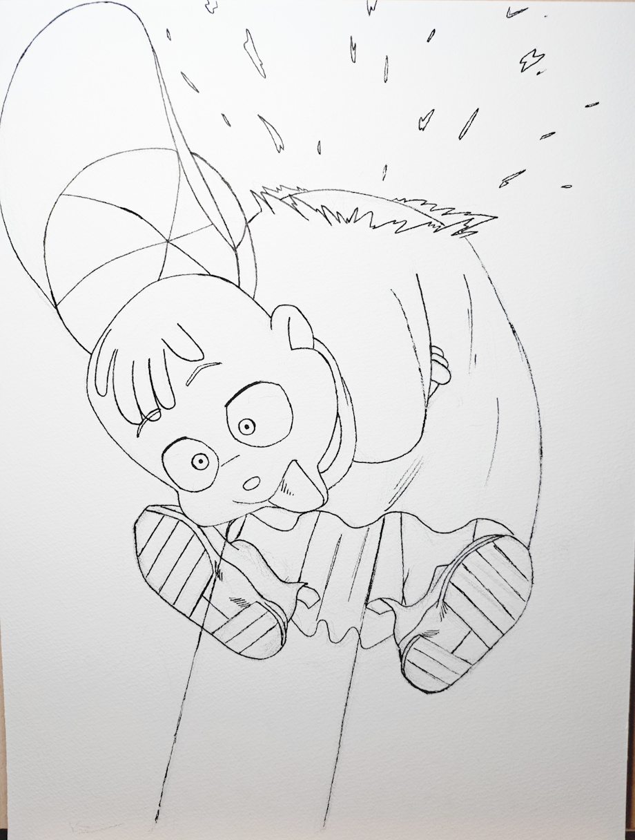 12"x16" watercolor paper with prismacolor color pencils and pigma micron ink