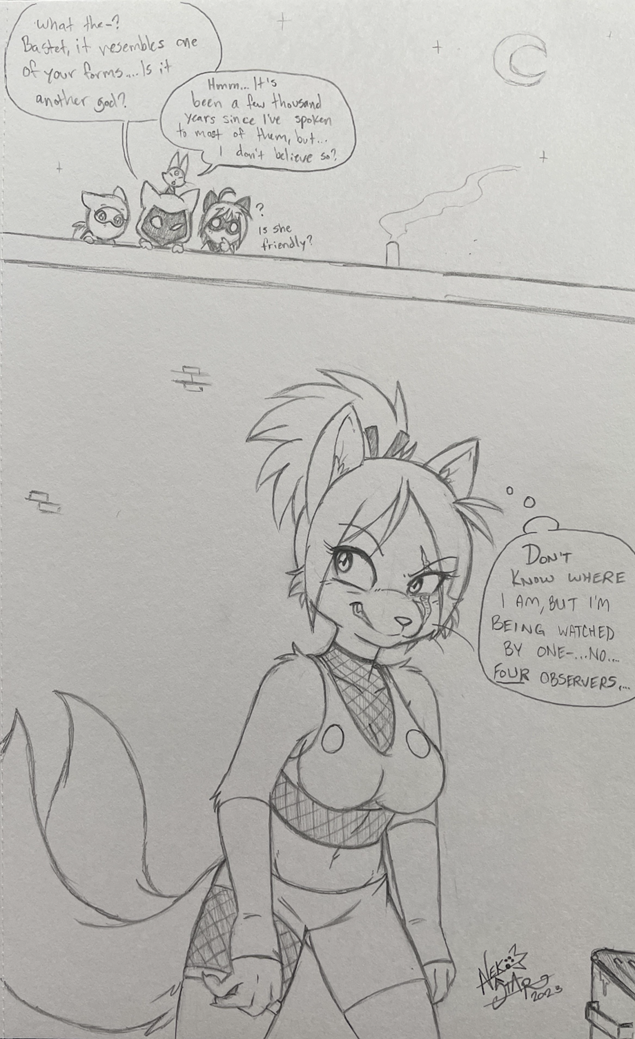 It is/was called "Phantom Cat," and lives on in my head, but I always thought of the comic as a fun way for me to have crossovers with my other comics/projects. Soon after my "Pacman" comic ended, their realm basically gets destroyed, with only a few survivors falling through a random interdimensional portal. In the Phantom Cat comic, we'd see these characters pop up, and it was up to PC and crew to see if these beings were friend or foe, and how they could either send them back to their home realm, or in this case, help them find a new realm to call home.