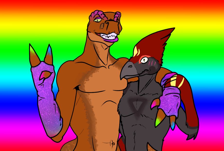 as @Kig_useless 's birb welcomes the adopted dino... and the dino welcomes him to pride!