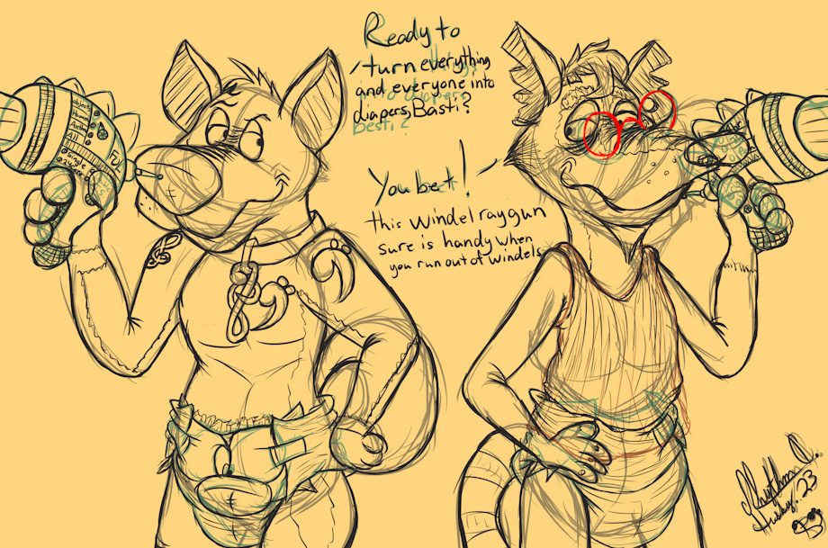 him and I are about to head outside and zip a everyone and everything into a diaper with our diaper rayguns