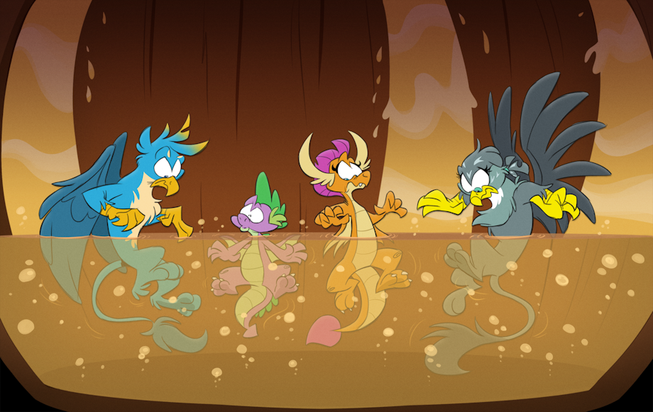The MLP gang (Spike/Smolder/Gallus/Gabby) trying out the new *Shine O' Fun at Foxy's Park, think it was a soaking smash! 😅😉