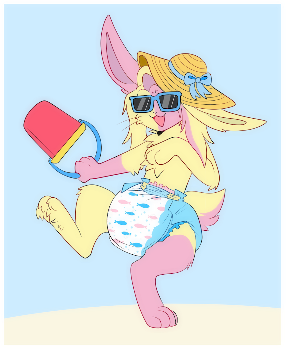 So what's the best way to start posting on Inkbunny? Well, posting a bunny might be a good start. Here's Tess, our Easter/April Fools bunny. But now Easter and April Fools have passed by, tess gets to enjoy a good bit of time off in the sun, she's got all she needs to enjoy the beach.