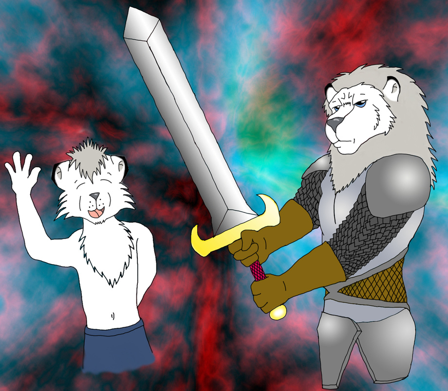 This is a lovely picture of my cub and adult fursonas done by my papa burr Ethancormack