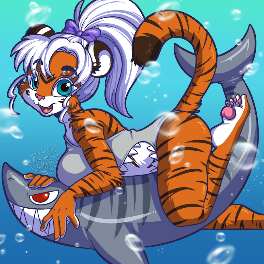 Based on an earlier idea of caramel with a shark floaty, i decided i wanted something similar with Brigitte. The cute tiger gal sharking it up and being adorable at the same time.