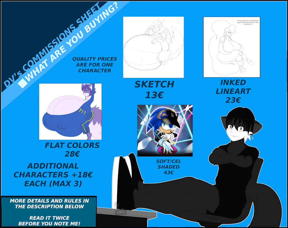 -Please please please, if you're going to ask me for a commission in the first note, atleast please tell me all the details about what you want in it.. Don't start the petition with "I'd like to have a commission".. Please say more details about what you want because due to time zones it'll take a time before i reply back asking what you'd want if i get that kind of reply.....That means that you must describe how the drawing must be like (poses, expressions, angle of view) and please bring the references of every character that's going to be in it. Have everything ready to send out in the first note first before you send out a blank with a big delay in it