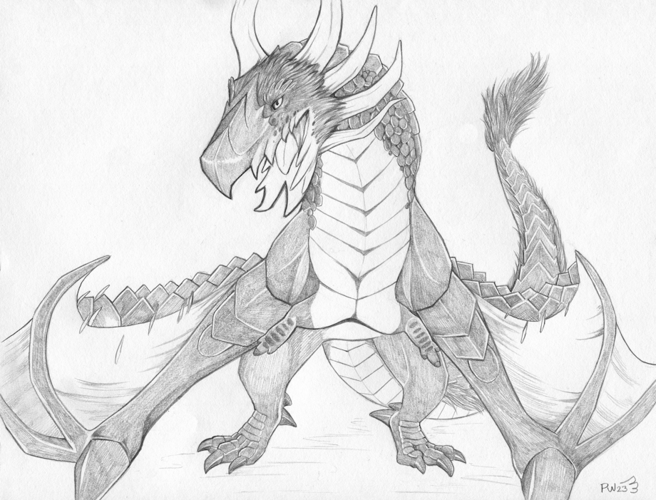 With all the humanoid bosses in video games, it's an exciting time for me to be spending a lot of time fighting a big sexy dragon boss :D I took the refinement a bit further, so she has plenty of monsteriness but also subtle dragon sexiness that is lacking in her canon model. I started this drawing while at a german pub, and liked it so much I finished it up at home.