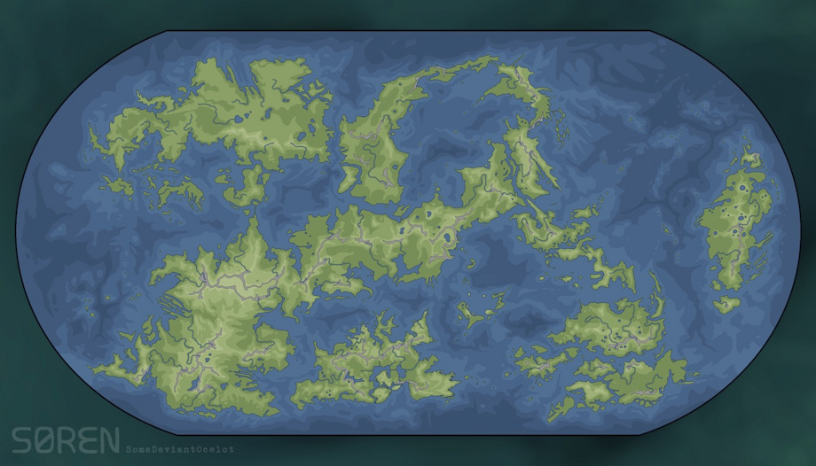 Some worldbuilding stuff! Was meaning to do a map for my main setting for a long time, but there was always something I needed to change, think on, etc, etc >< there still is, but I think atm it's in a state good enough to share, so here it is :D