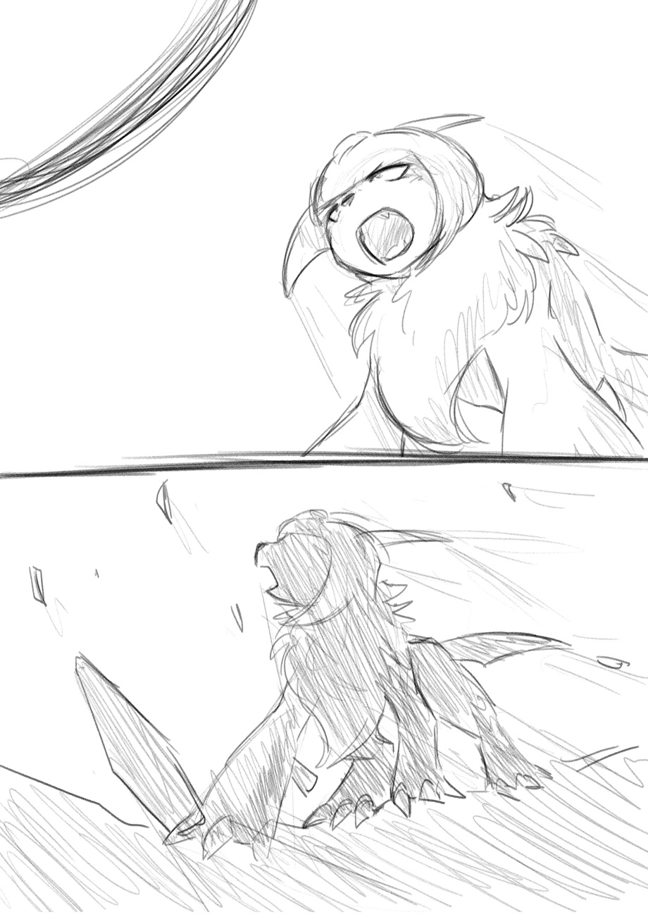 I did a draw for draw of the scene with Zoroark doing Focus Blast. Both because it's a valid competitive move and it's funny that a Ghost/Normal dishes out a Fighting type move