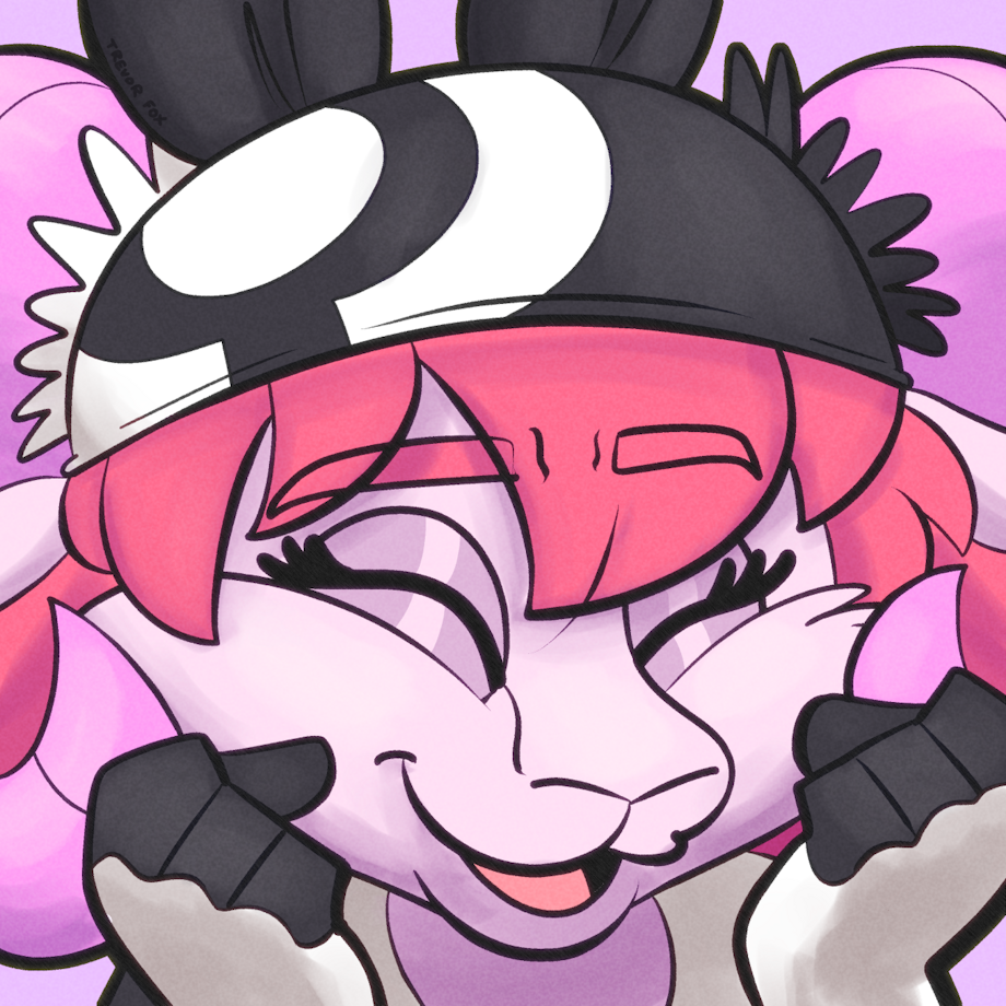 A cute avatar of her goat 'sona! She's dressed like May from Pokemon and totally hype for adventure!