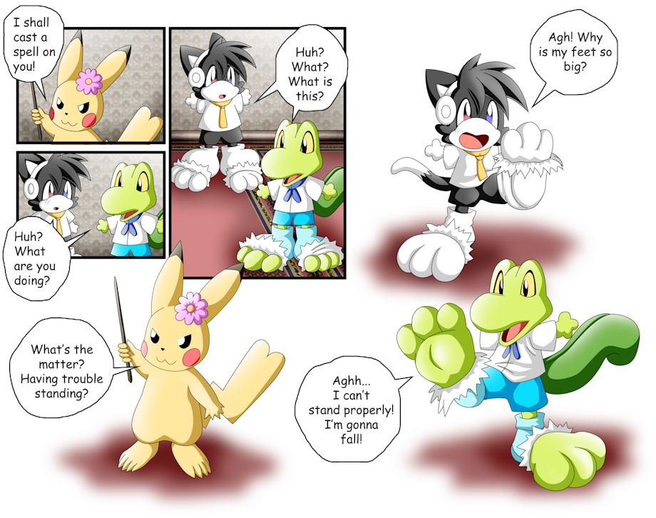 There is a very short story was from the link below if you're interested to read his big magic feet story here and also don't forget to fave his original pic too aswell. https://www.furaffinity.net/view/47125506/