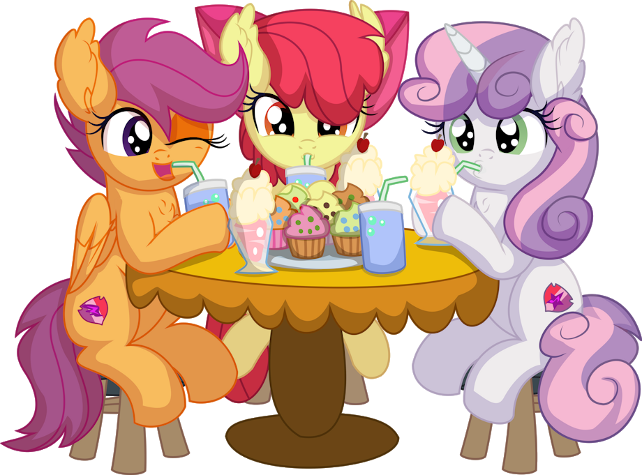 Apple Bloom, Sweetie Belle, and Scootaloo, are eating at Sugarcube Corner (No background version)