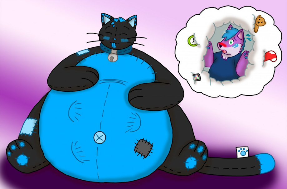 Everyone knows that if you don't keep your plushies properly stuffed then they will take it upon themselves to find stuffing on your own. Sting learned this the hard way and found himself in the belly of a plushie kitty. At least he will be nice and warm in there.