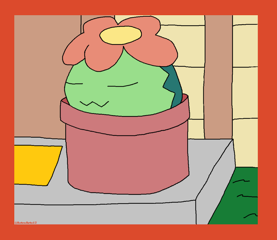 Not sure what the name of this one is, but a friend wanted me to draw that one maractus pre-evolution concept. It's really cute, so what's more comfy than it just chilling in a pot on their owner's porch? Such a qt!