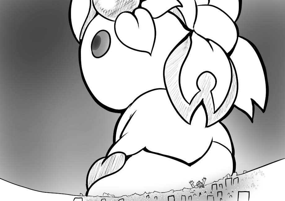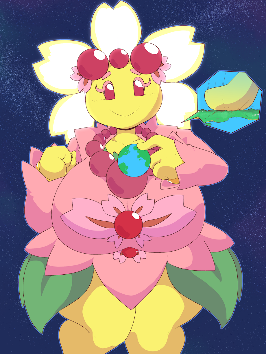 I like to call this design "full sunshine Chebi"... A more impressive outfit for when she's extremely huge. It could be considered either a gigantamax form or mega-evo of her, the former being very fitting. But...Dunno. Still really like how that design come out though, probably gonna get more of her looking like that. Look extra powerful and extra adorable ^^