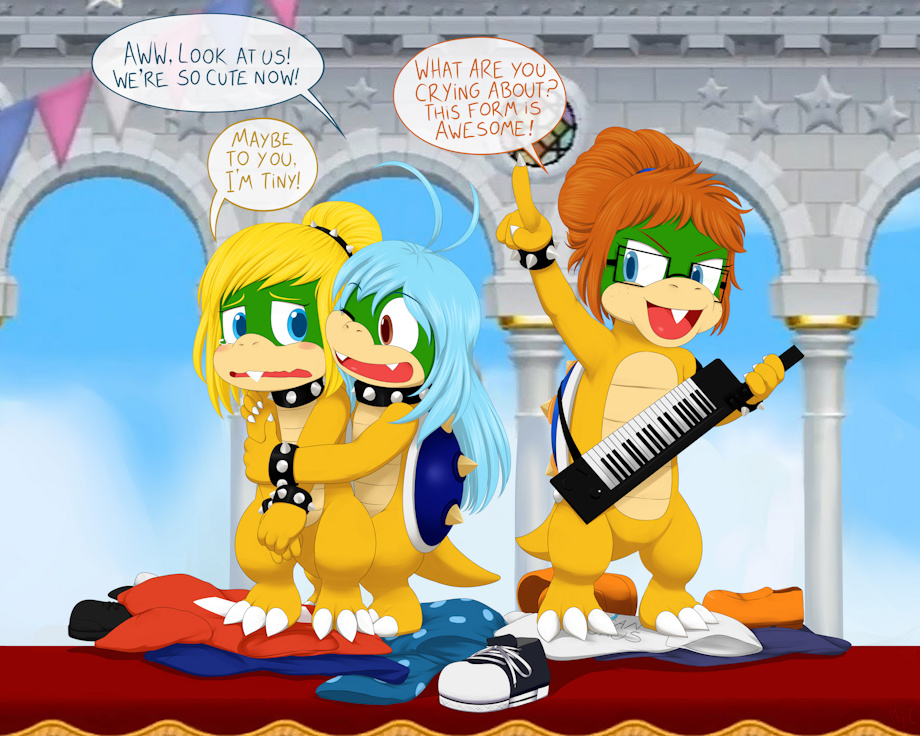 got turned into a Koopalings! Poor lil' dcdawg is the only one who seems kind miffed about it, she'll get to used to it eventually tho, I think.