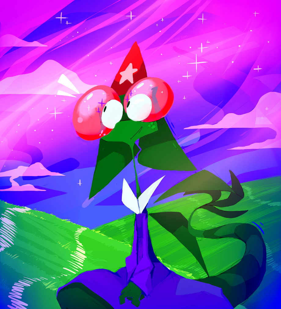 Oh my gosh! The colors, the landscape, it's all so beautiful and cozy!! I love the twinkling of the stars in the sky and the purple-hued night sky is so relaxing and beautiful. And Rok is such a cutey and looks incredible as well! ❤️ I could totally see this lovely piece hanging on a wall in a lovely, flowery frame.