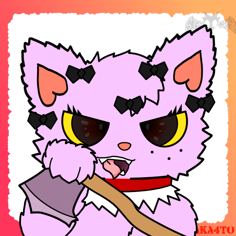 Should probably introduce Bemma to you all: Bemma (she/it/bitch) is a pink and more spiky look-a-like of Me, unlike me she's tons more chaotic and a bully, Bemma identifies with Demigirl + Polysexual + Aromantic, lastly Bemma wields a high tech axe but because of the possibility of that axe being stolen she hides her real axe in her anus and carries a decoy around (the decoy axe is the axe she's holding here)